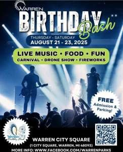 • 5:30 PM – 7:00 PMLarry Lee and Back in the Day headline the evening, delivering their signature throwback tunes to kick off the festivities. City of Warren+12City of Warren+12City of Warren+12